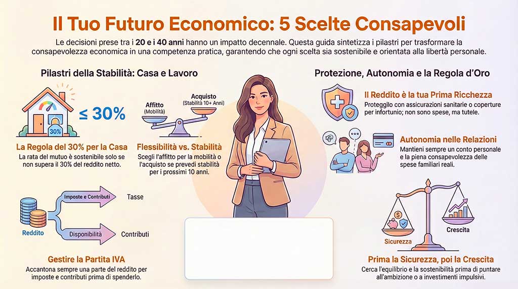 Progettare il futuro significa prendere decisioni economiche consapevoli che aiutino a costruire stabilitΓ e sicurezza nel tempo. Dalla gestione dello stipendio alla creazione di un fondo di emergenza, dalle scelte legate alla casa e al patrimonio fino alla pianificazione delle risorse familiari: conoscere gli strumenti economici permette di affrontare con maggiore serenitΓ le diverse fasi della vita. I video di questa sezione offrono indicazioni pratiche per orientarsi tra risparmio, investimenti e gestione responsabile delle proprie risorse.